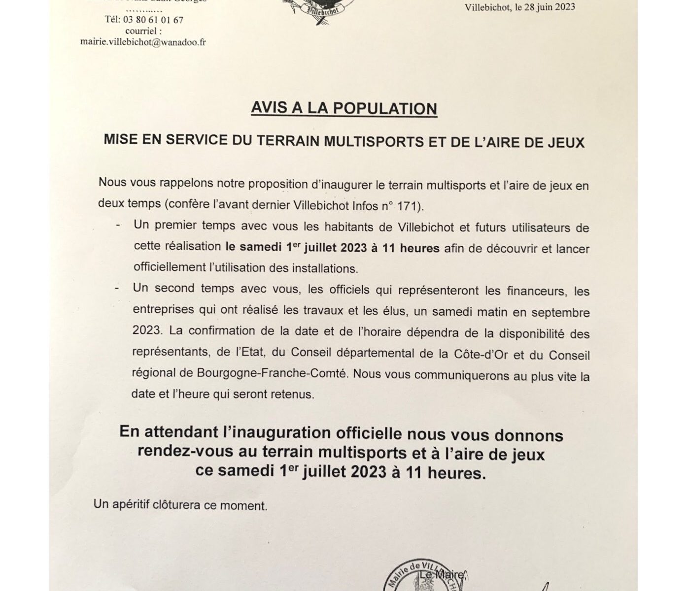 Samedi 1 er juillet 2023 à 11 heures le Maire Pascal GRAPPIN a donné rendez-vous à la population pour la mise en service du nouvel espace de sports et de loisirs intergénérationnel.