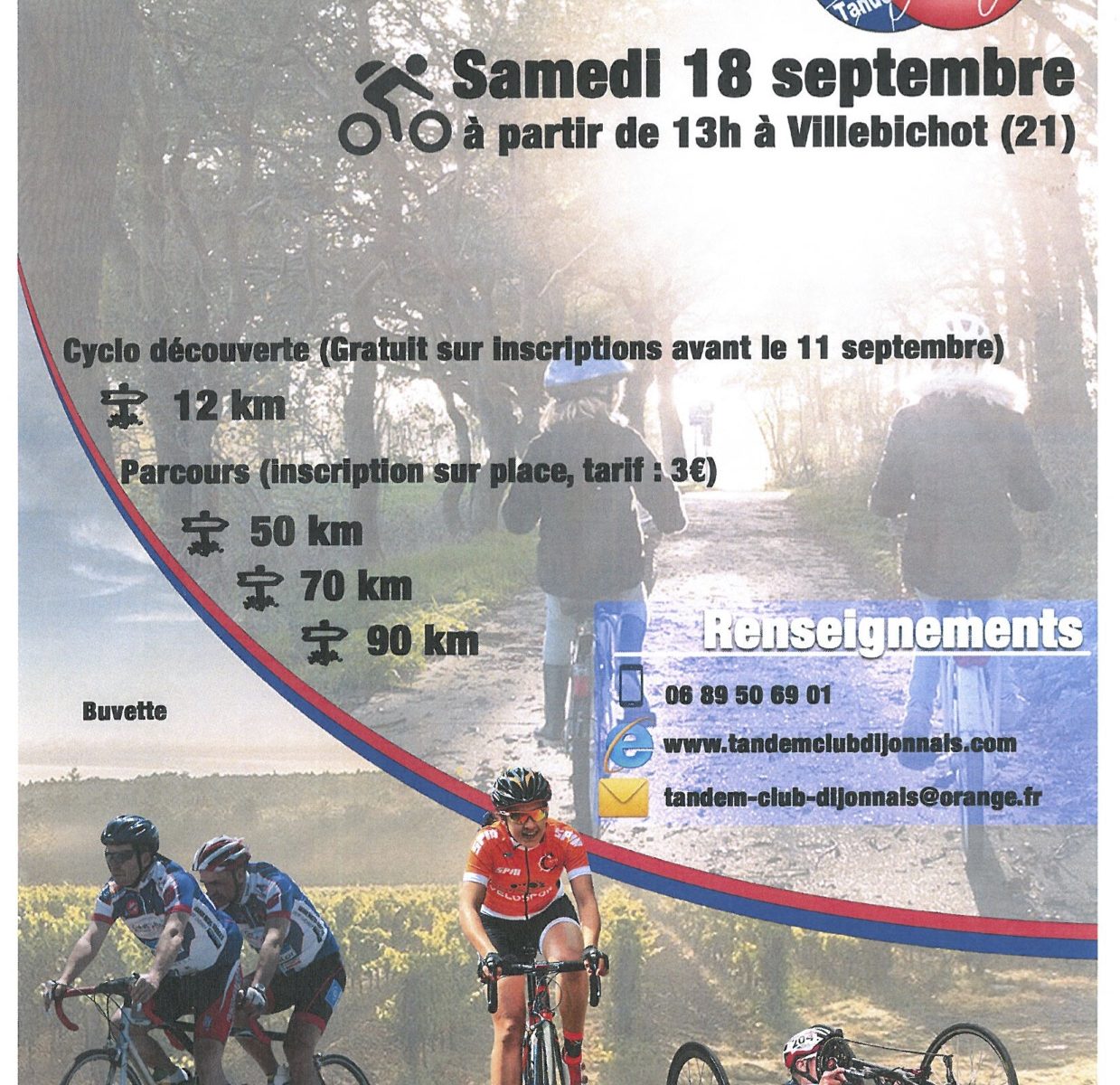 Ce samedi 18 septembre à partir de 13H à Villebichot le Tandem Club Dijonnais organise la rando du patrimoine pour tous.