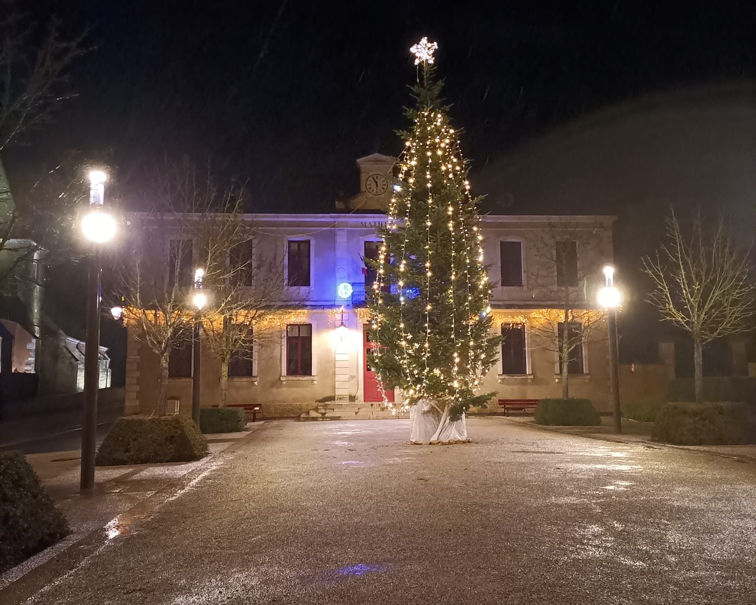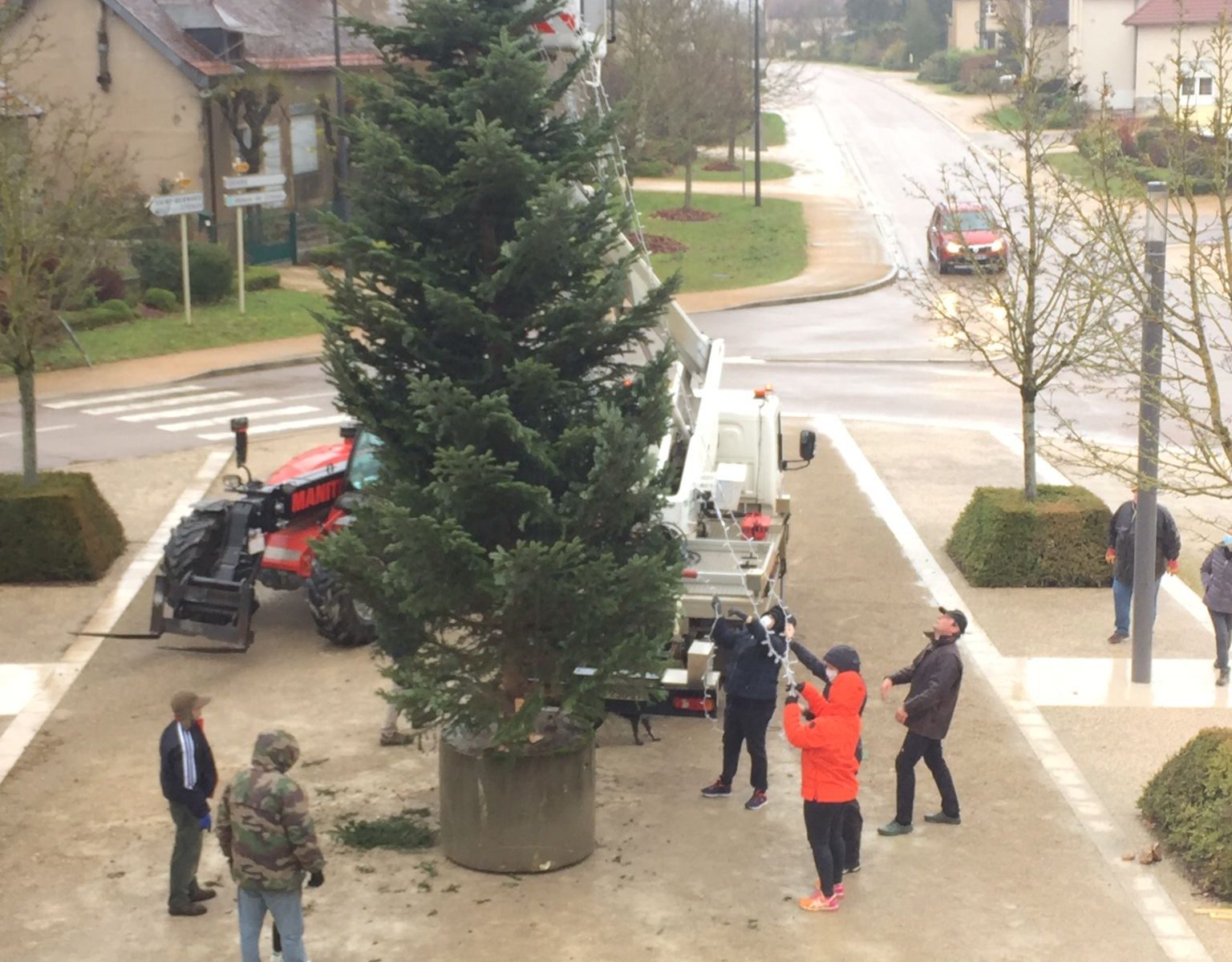 Cette année c’est un sapin de 8m qui a été installé sur la place de la mairie et qui nous l’espérons ravira les plus petits et les plus grands.